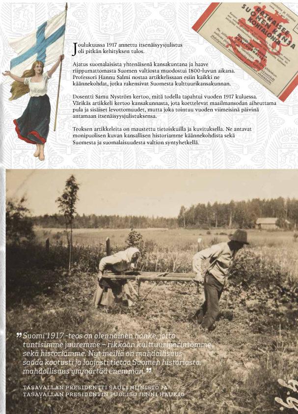 Suomi 1917 on Valtioneuvoston kanslian virallinen itsenäisyyden juhlavuoden hanke ja sille on myönnetty oikeus käyttää SuomiFinland100-tunnusta, joka on folioitu selkään sekä painettu tittelisivulle. ( Maksun voi suorittaa korottomana osamaksulla vain 20 €/kk.